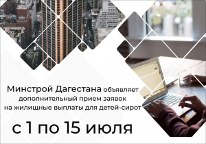 Министерство строительства, архитектуры и ЖКХ РД сообщает о продлении сроков подачи документов для получения жилищных выплат детьми-сиротами. В соответствии с новым приказом ведомства, с 1 по 15 июля 2025 года будет открыт дополнительный период приема заявлений.